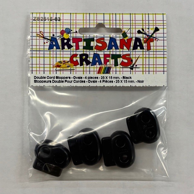 Cord Stoppers, 25 X 15 Mm., 4 Pieces, Black
