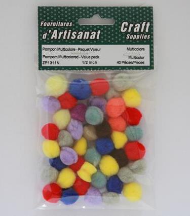 | ZP1311N | Pompom Multicolored - Value Pack, 1/2 Inch, 40 Pieces, Multicolor | Packing 40 Pieces Size 1/2 inch Color Multicolor