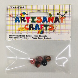 | ZXYS100-04 | Semi Precious Beads, 8 Mm., 5 Pieces, Rhodonite | Packing 5 pieces Size 8 mm. Color Rhodonite