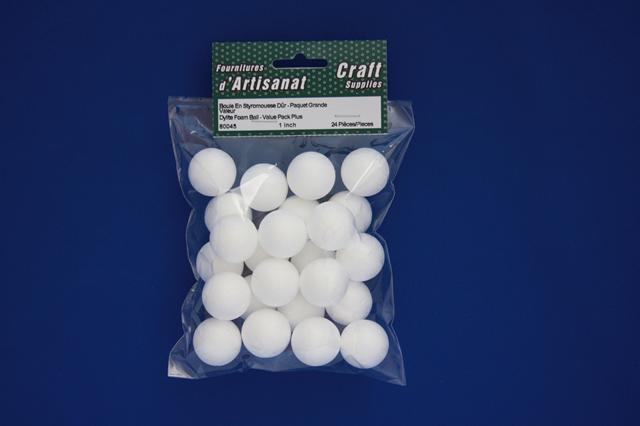 Dylite Foam Ball, 1 Inch, 24 Pieces, Blanc