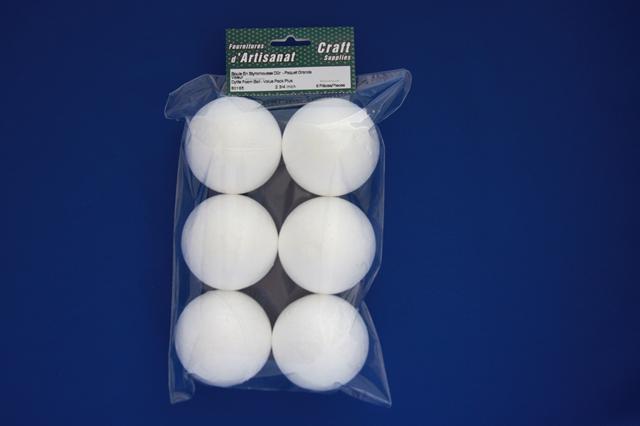 Dylite Foam Ball, 2 3/4 Inch, 6 Pieces, Blanc