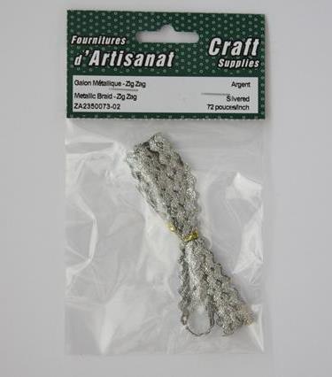 Metallic Braid - Zig Zag, , 72 Inch, Argent