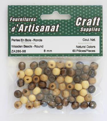 Wooden Beads - Round, 8 Mm, 60 Pieces, Coul. Nat.