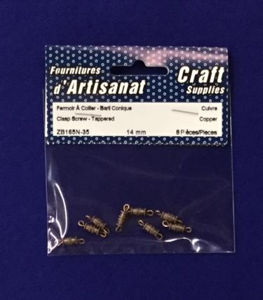 Clasp Screw - Tappered, 14 Mm., 8 Pieces, Cuivre