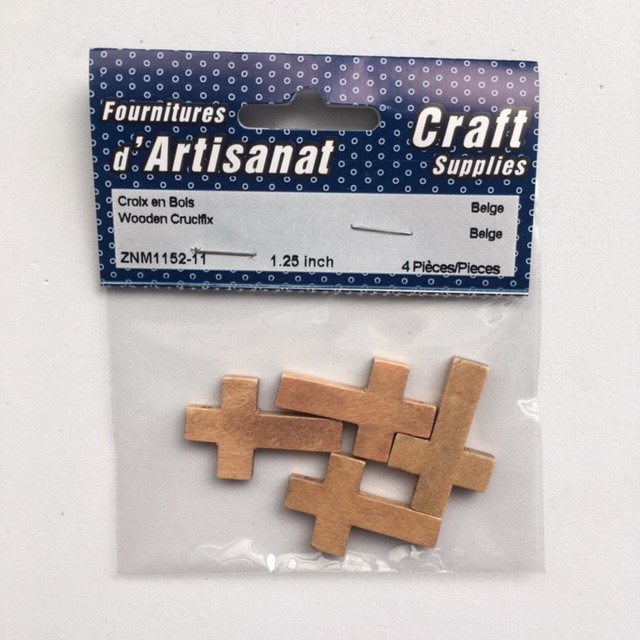 Wooden Crucifix, 1.25 Inch, 4 Pieces, Beige