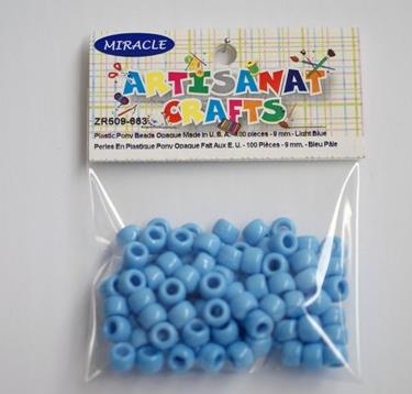 Opaque Pony Beads, 9 Mm., 100 Pieces, Bleu Pâle