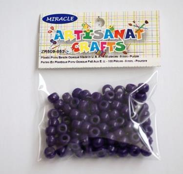 Opaque Pony Beads, 9 Mm., 100 Pieces, Pourpre