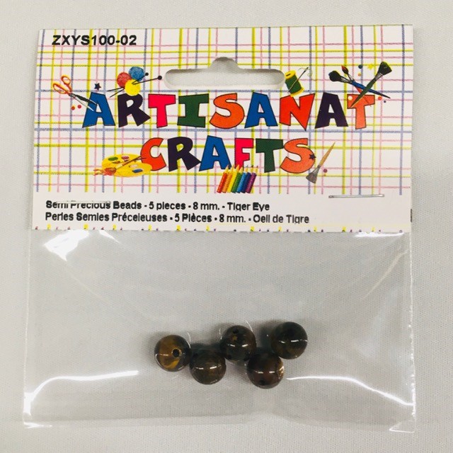 Semi Precious Beads, 8 Mm., 5 Pieces, Tiger Eye