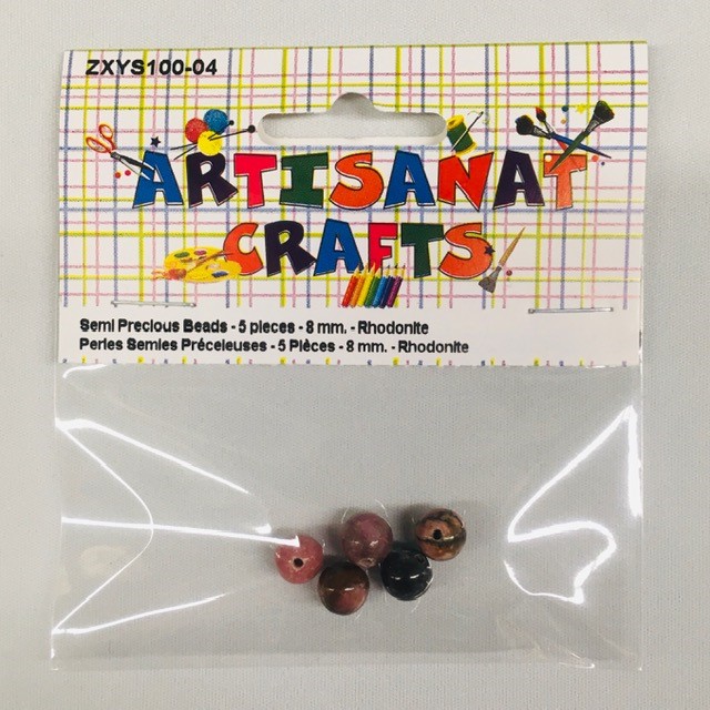 Semi Precious Beads, 8 Mm., 5 Pieces, Rhodonite